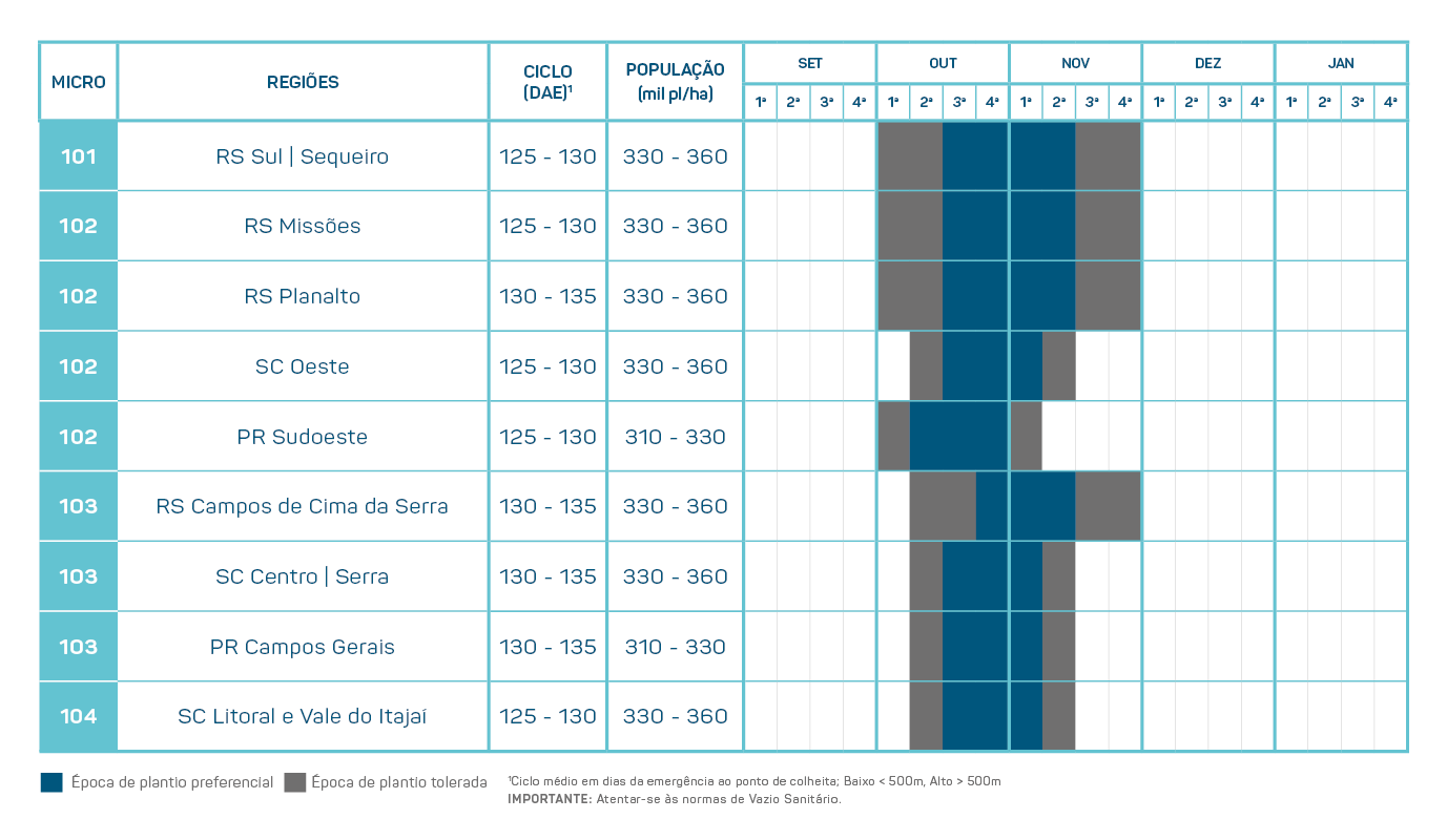Alto potencial produtivo, estabilidade, resistência à ferrugem asiática, permite plantio de milho segunda safra e ótima opção de refúgio